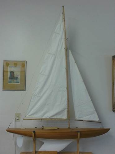 The 1920s style sailing boat In which the sails and rudder are radio-controlled